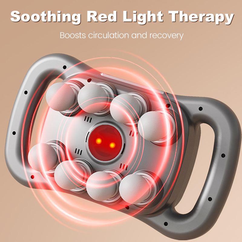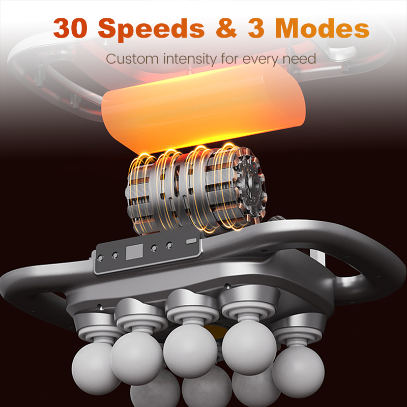 KAHDEKSAN PÄÄN RAKENNE - Kattaa huomattavasti suuremman alueen kuin tavalliset hierontalaitteet, tarjoten tehokkaamman ja kattavamman lihasten rentoutuksen. Tämä rakenne maksimoi lievityksen suurille lihasryhmille, kuten selälle, reisille ja hartioille, lyhyemmässä ajassa.