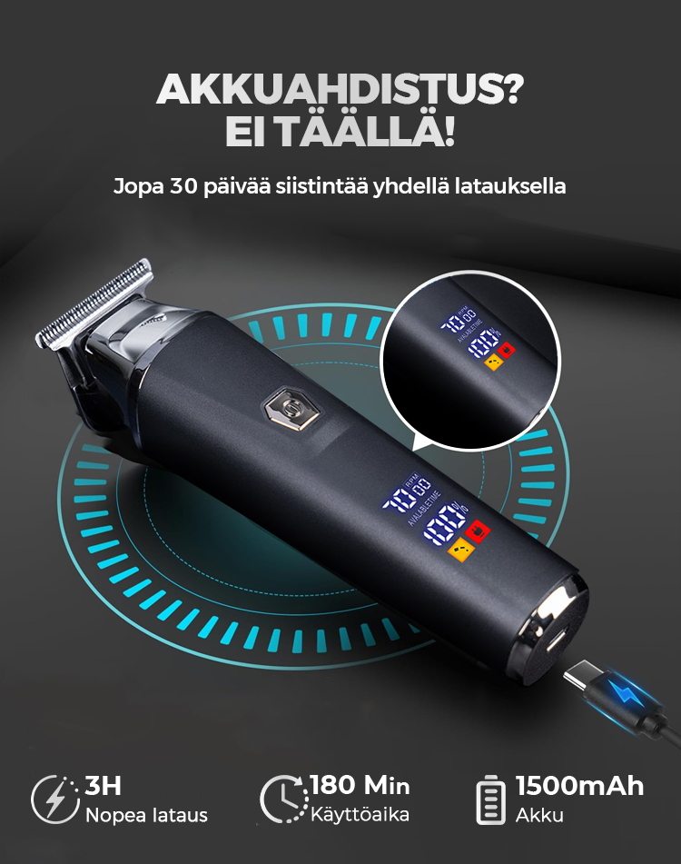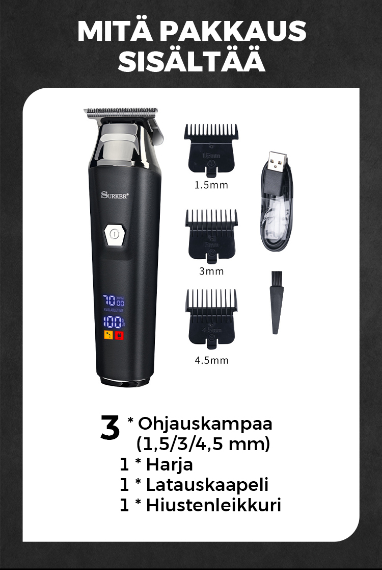 đ„Kotitalouksien ammattilaistyylinen sĂ€hköinen hiusleikkurisarja digitaalinĂ€ytöllĂ€