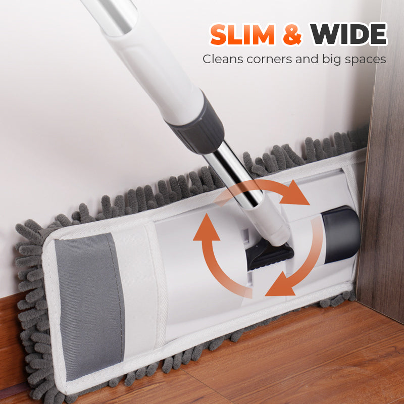 Breites und schlankes Design: Extra breites Mop-Kopf bedeckt größere Bereiche schneller und ultradünne Paneel mit Seitenlücken rutschen leicht unter Betten, Sofas und schmalen Räumen.